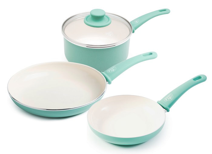 Perfect that sauce, stew, or soup with the included single frying pan, one deep skillet, one sauce pan, and two lids.